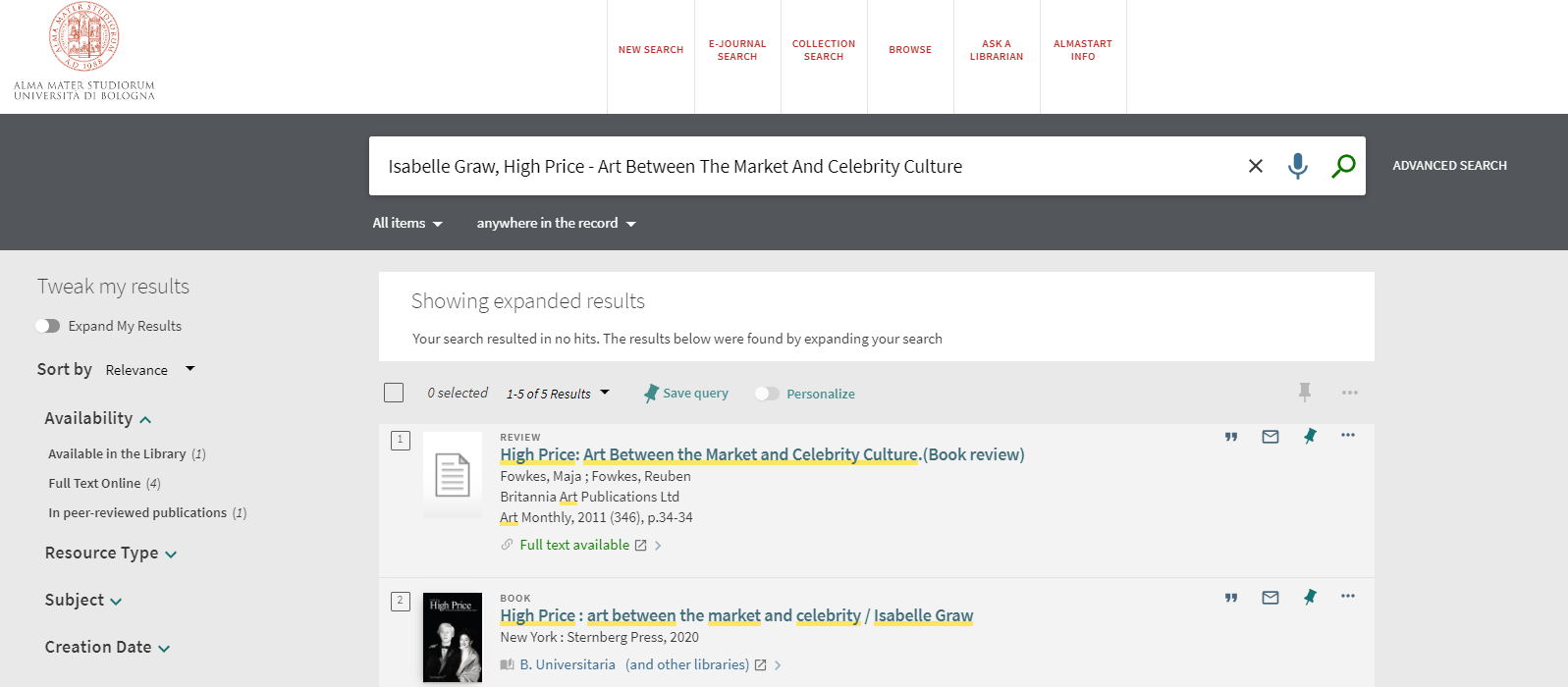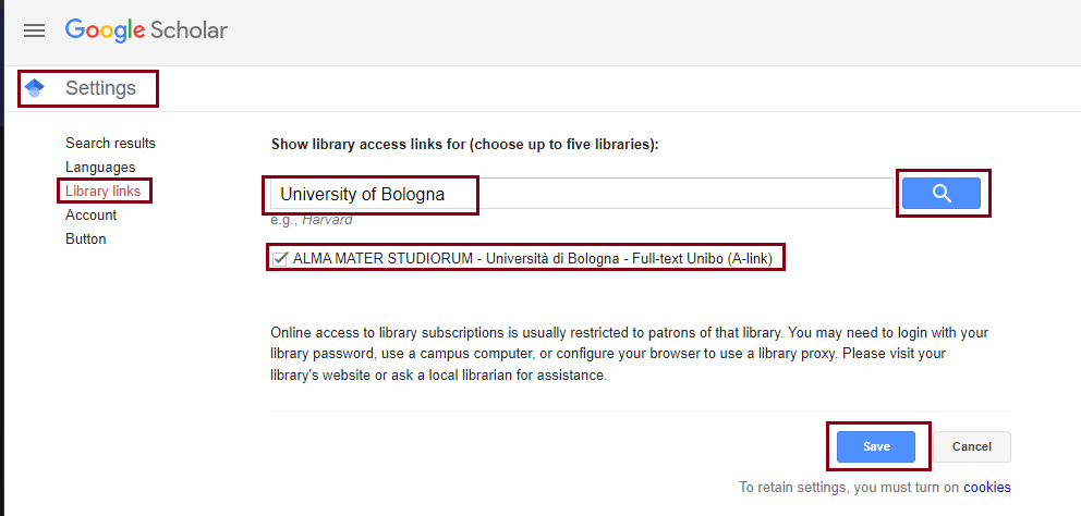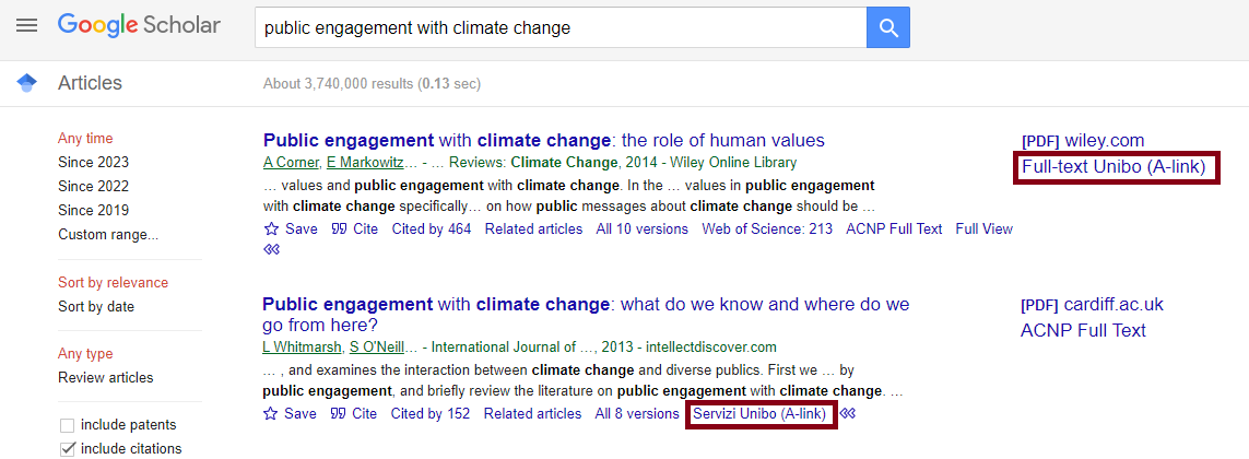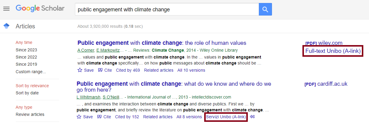 A-link: ricerca su Google Scholar Visualizzazione dei risultati di ricerca su Google Scholar con A-link
