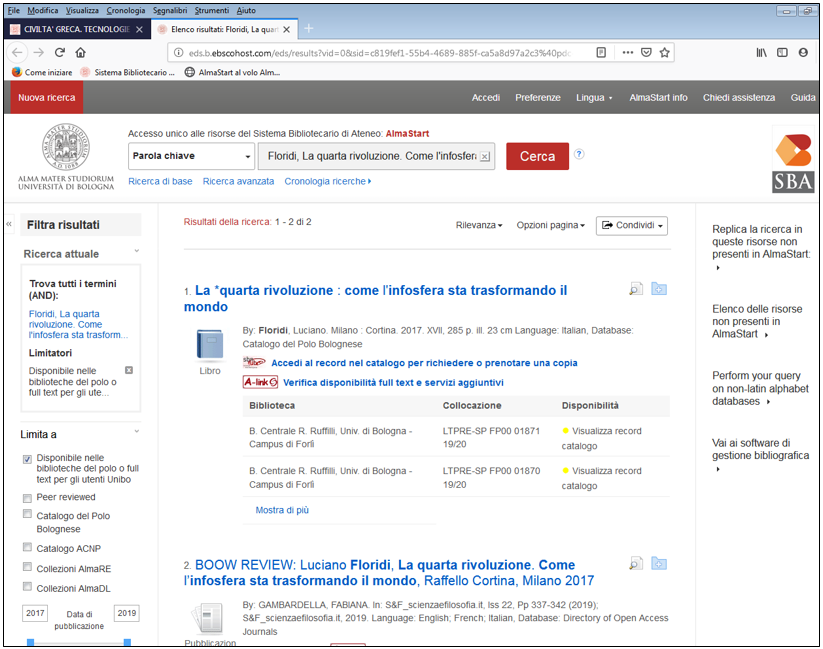 Alma mater studiorum - Sistema bibliotecario di ateneo